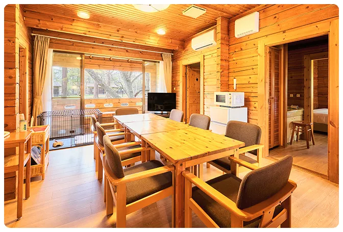 コテージはご利用人数に合わせて3タイプあり、室内はリビングと寝室に分かれているので、ご家族や小グループでのご旅行にも最適です。