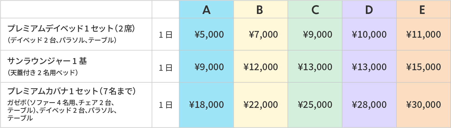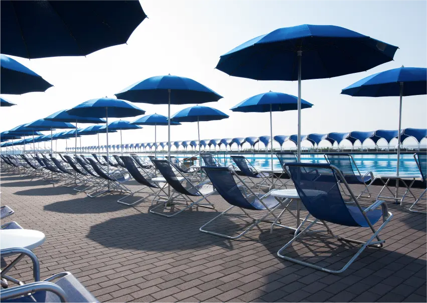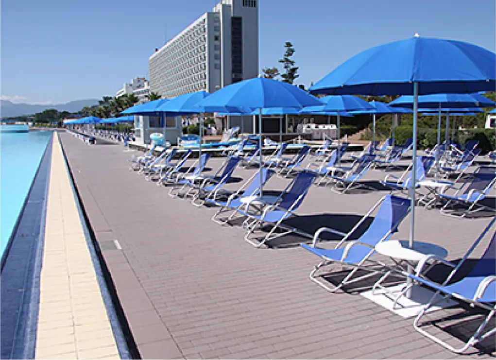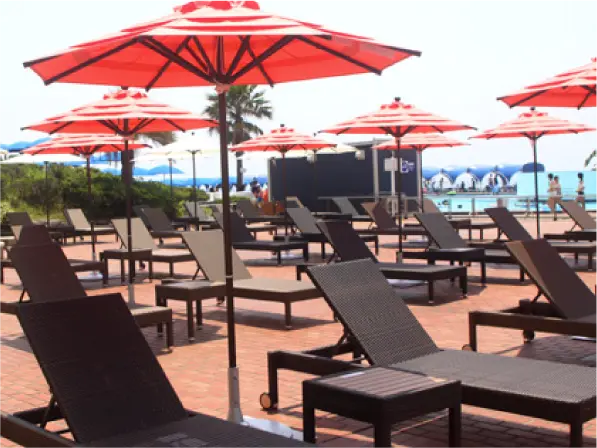 ビーチパラソルをはじめ、ファミリー・グループでのご利用に便利なテントエリア、ご宿泊者さま専用エリアなどお好みに応じてお選びいただけます。