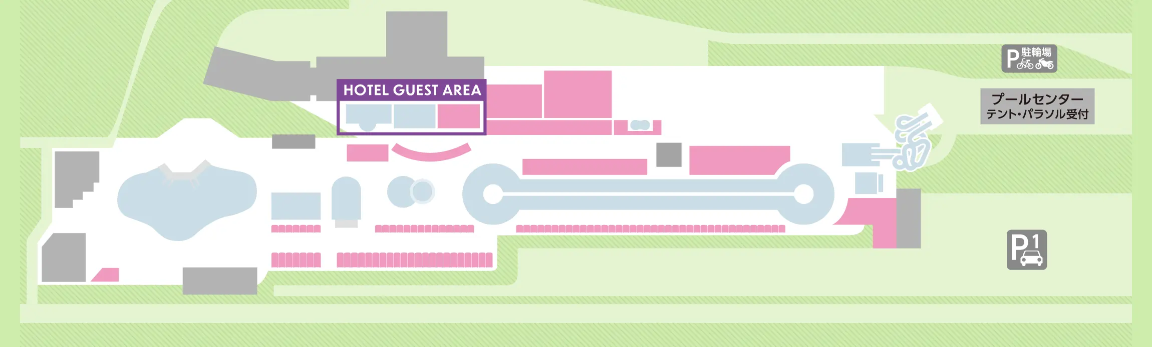 ご宿泊者さま専用入場口を出てすぐのホテル目の前のご宿泊者さま専用エリア。