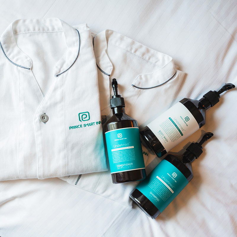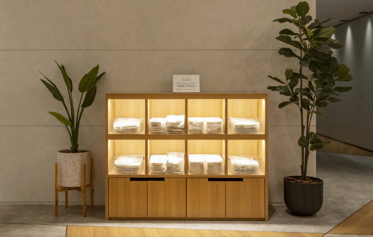 Guests can select their own amenities in the lobby. We have toothbrushes, razors, hairbrushes, and body towels.