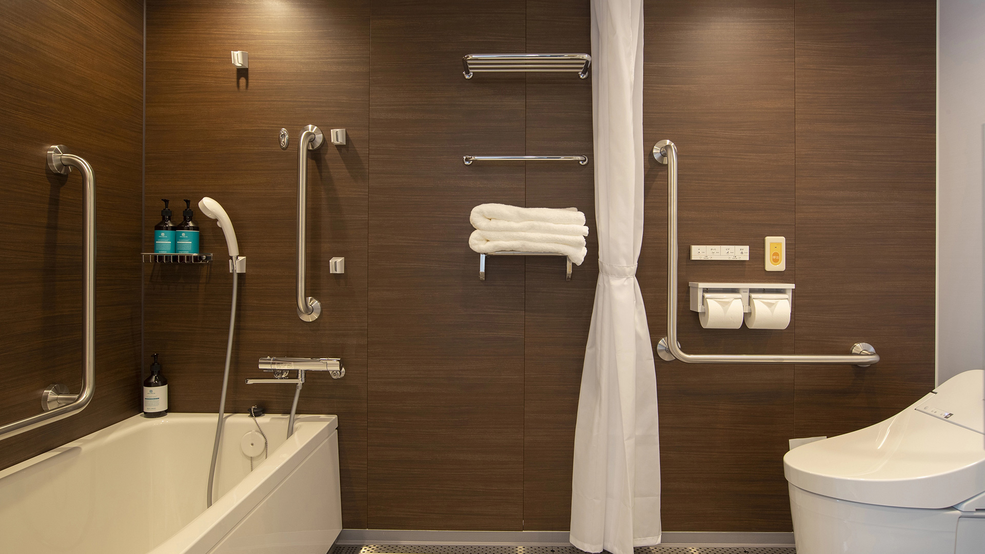 휠체어의 손님까지도 쾌적하게 숙박하실 수 있는 객실입니다.
