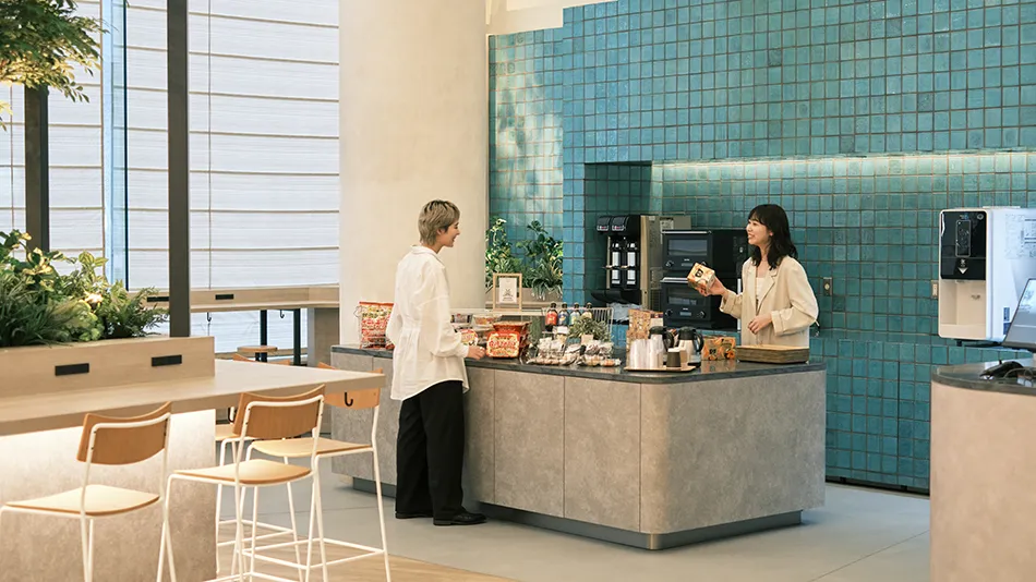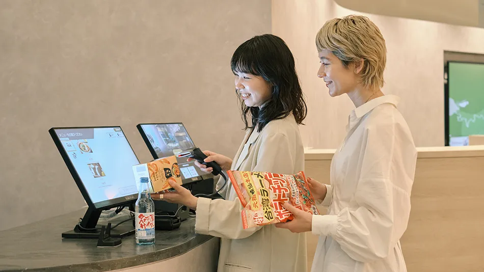 手軽にお召しあがりいただける軽食やご当地のお飲みもの、お菓子などを選んですぐテイクアウトができるGrab & Go形式を導入したセルフレジ型ショップを併設。