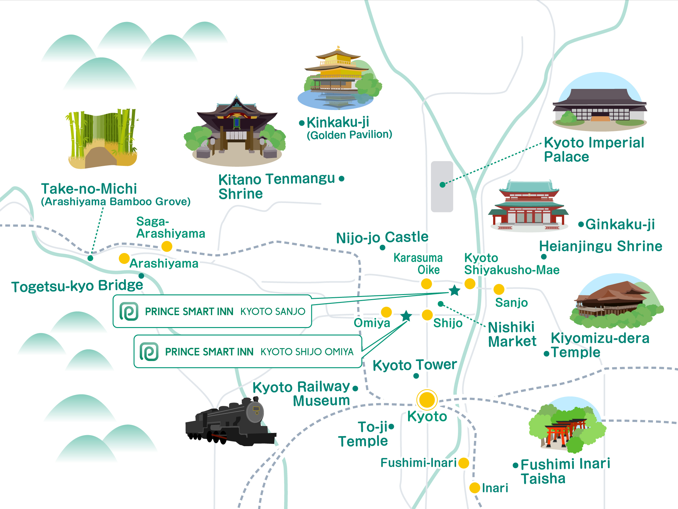 - 阪急京都線「大宮」站 2A 出口步行約 2 分鐘/京福嵐山本線「四条大宮」站出口步行約 3 分鐘/京都市營地下鐵烏丸線「四条」站 23 號出口步行約 11 分鐘