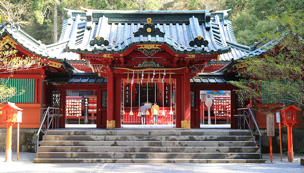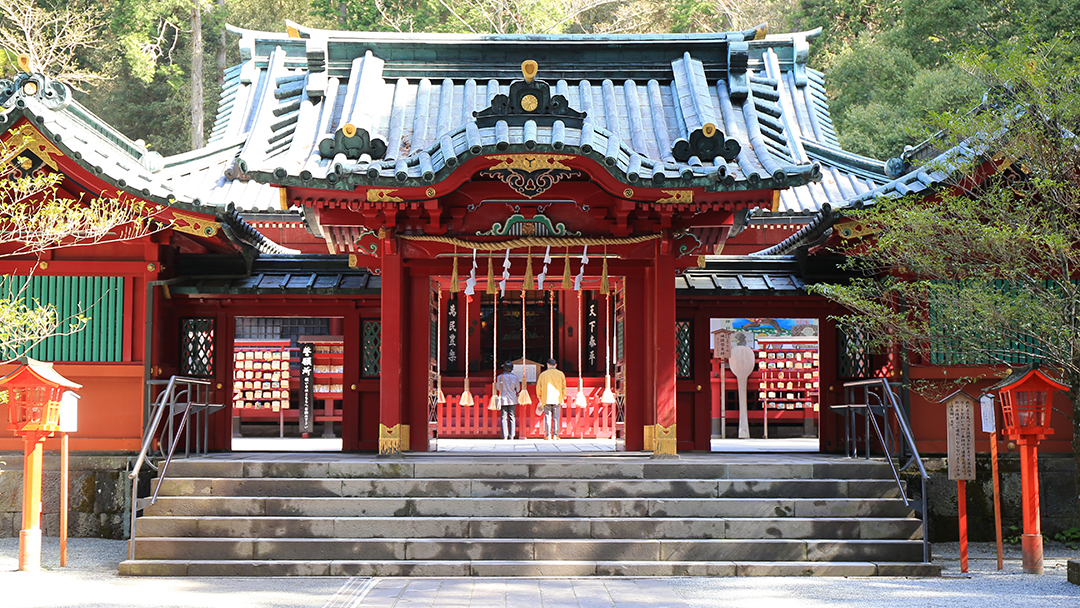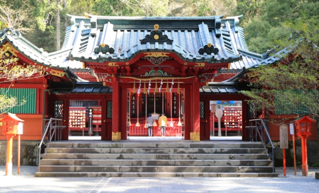 ホテルから車で約5分。御鎮座1250年を超える神社で、開運厄除・心願成就・交通安全・縁結びに御神徳の高い神様として信仰されています。芦ノ湖湖水上に建つ「平和の鳥居」も人気スポットです。