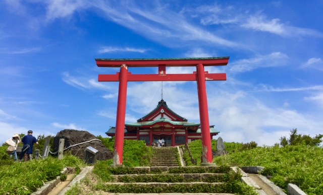 駒ヶ岳山頂にある箱根神社の「奥宮」です。龍宮殿から徒歩5分程にある箱根駒ヶ岳ロープウェーでお気軽に訪れることができます。起源は2400年前にさかのぼり、四季を通じて多くの登拝者で賑っています。