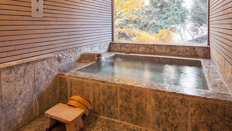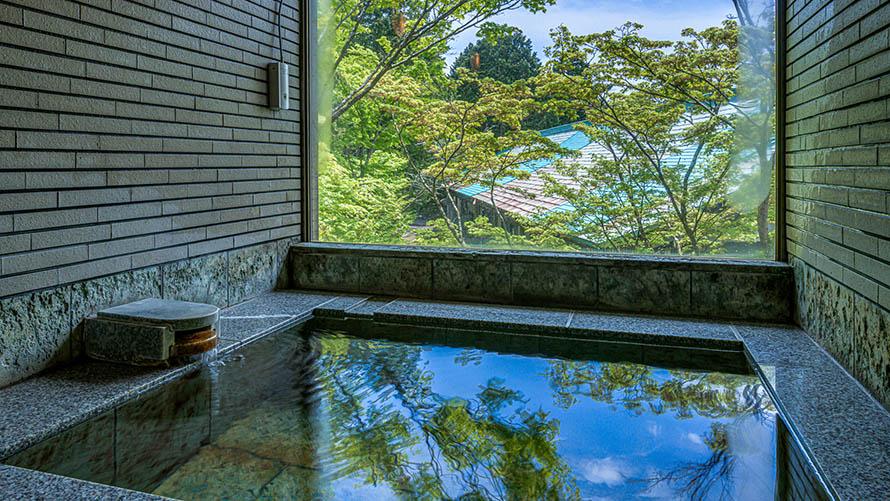 枯山水を望める2つの大浴場、四季の移ろいを感じながらおくつろぎいただけます。