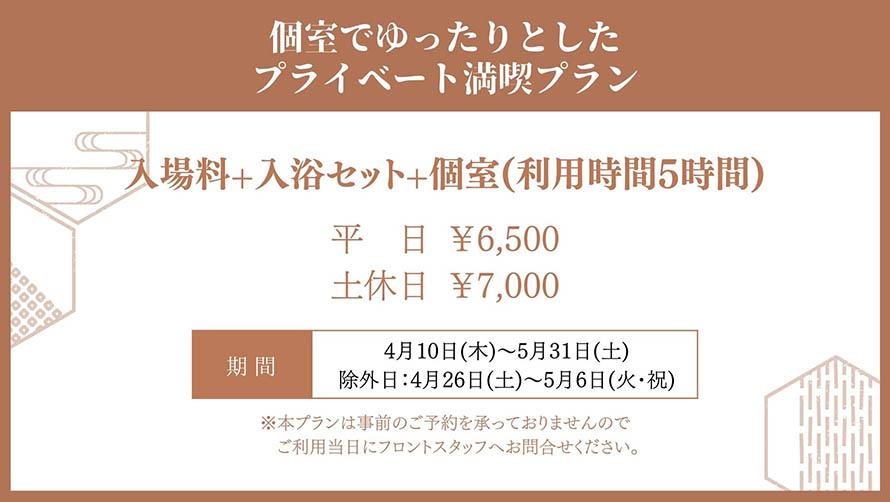 ※デイユースプランや個室料金の料金は「お知らせ」をご確認ください。