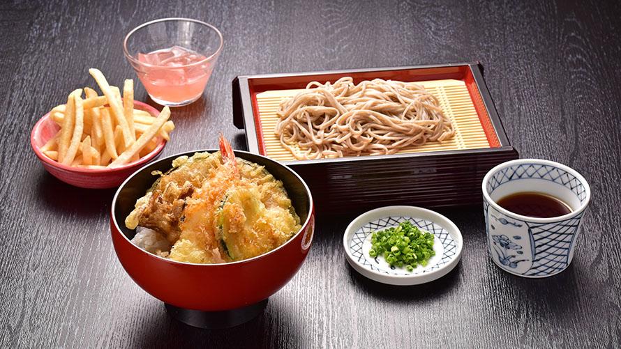 〇 お子さまセット(天丼(小)/せいろそば(小)/ポテトフライ/デザート)¥1,750