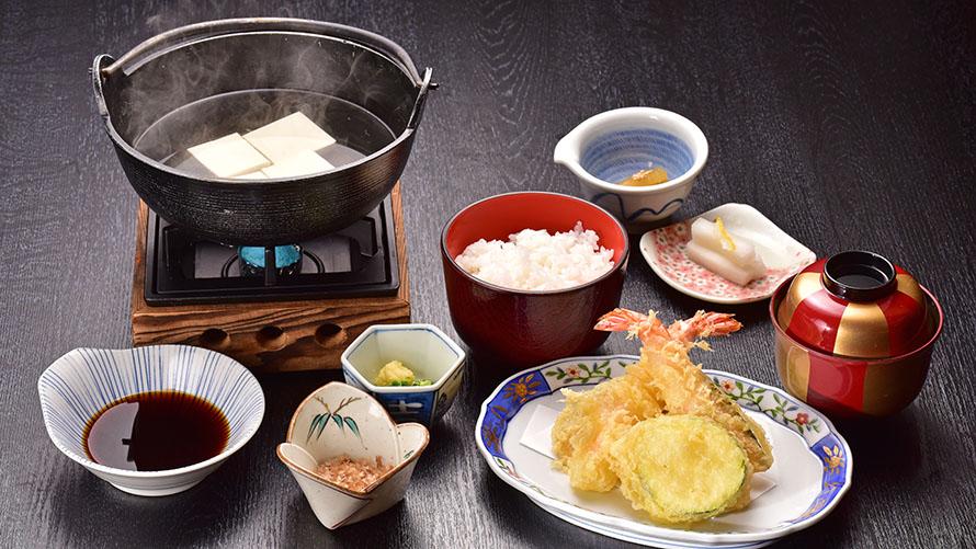 湯豆腐/天婦羅/小鉢/御飯/香の物/お椀