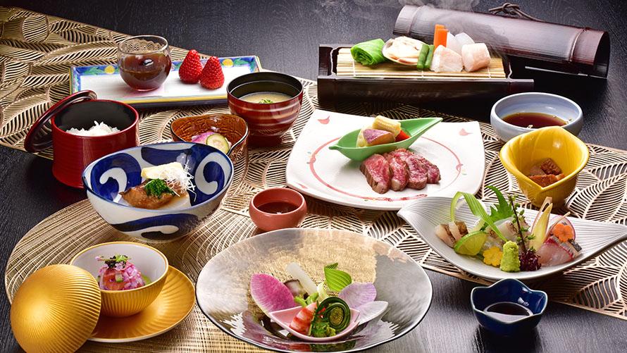 フルボトルシャンパンをご夕食時にご用意し、龍宮殿の料理長が厳選した季節の食材で、特別なひとときをお楽しみいただけます。窓から見渡す絶景とともに、こだわりの料理で贅沢なひとときを演出。心に残る記念日を、極上の空間でお過ごしください。