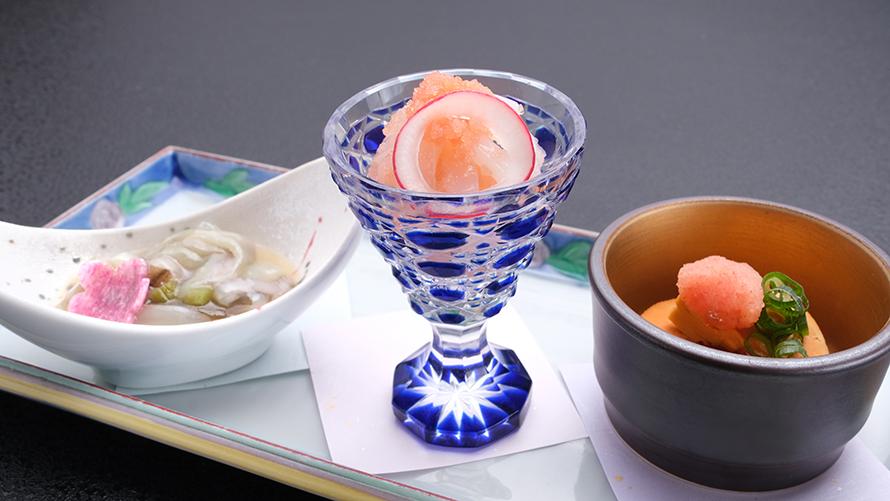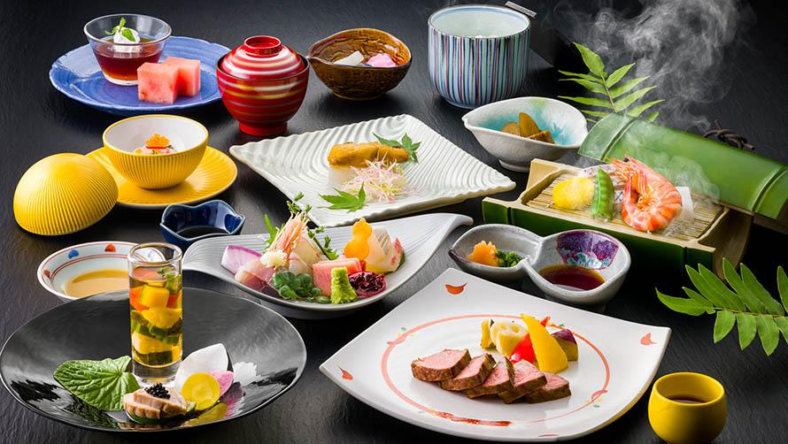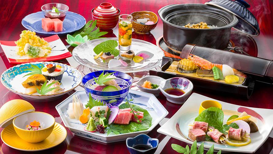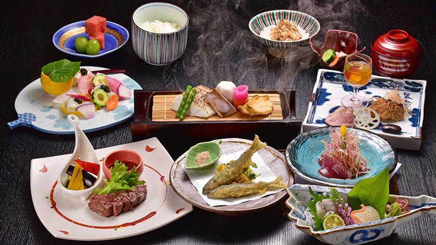 お食事は、季節に合わせた料理長こだわりの懐石料理をご用意しております。