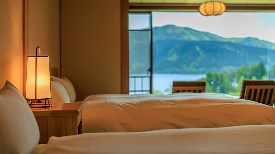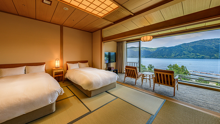 芦ノ湖を一望する湖畔和室ツインベッドルーム