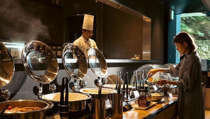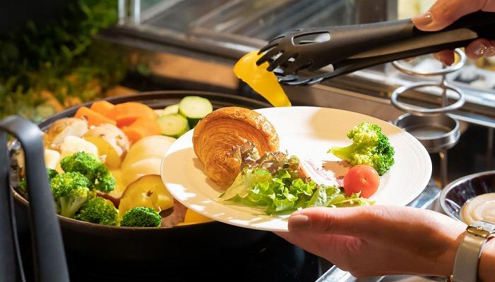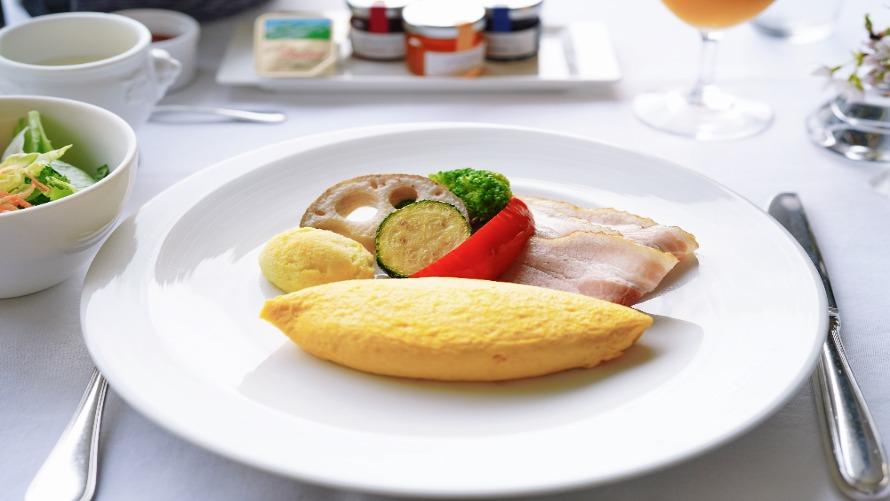 シェフが作る出来立てのオムレツ、そのほか多種多様なメニューを楽しめるブッフェスタイル。