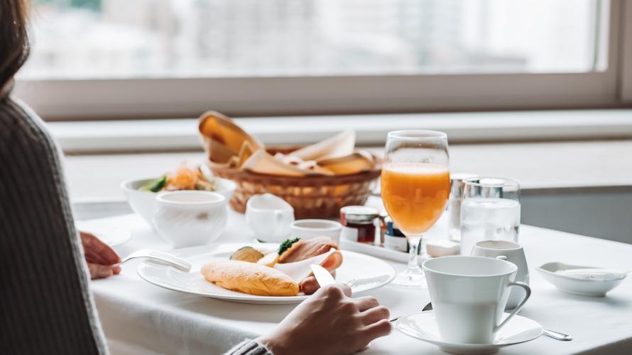 やわらかな朝日を浴びながらホテルで楽しむ優雅な朝食。