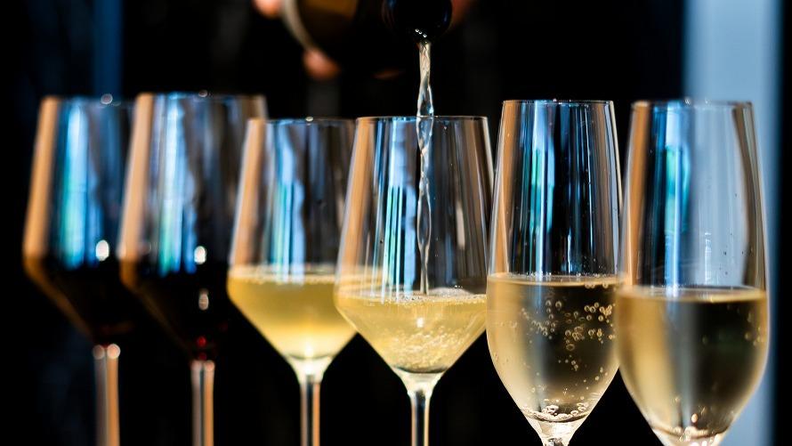 ワイン:スパークリングワイン、白ワイン、赤ワイン