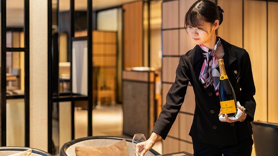 Forbes Travel Guideで4つ星を受賞したホテルのイタリアンレストランで、シャンパンを片手にくつろぐ上質なひとときを