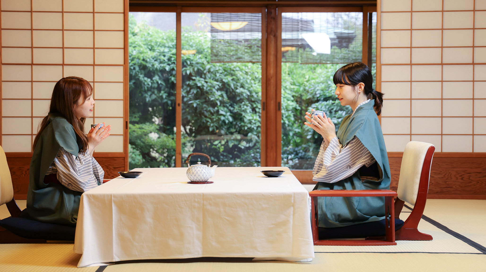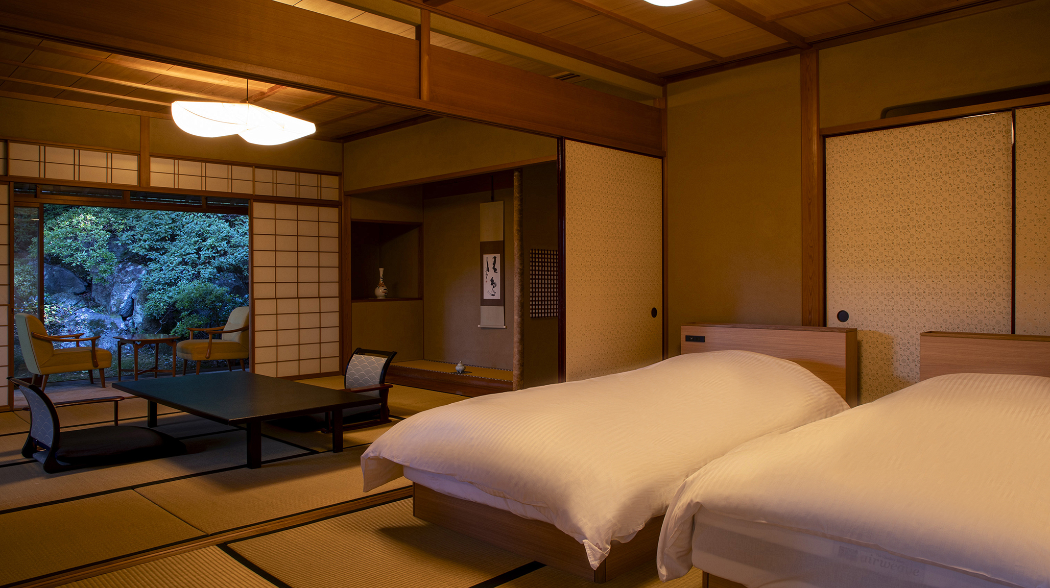 お部屋の広縁で坪庭を眺め、くつろぎのひとときをお過ごしください。