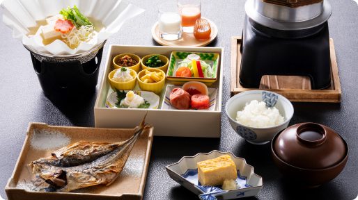 当館の朝食は、国内産米をお一人ずつ釜炊きにしてご提供いたします。
