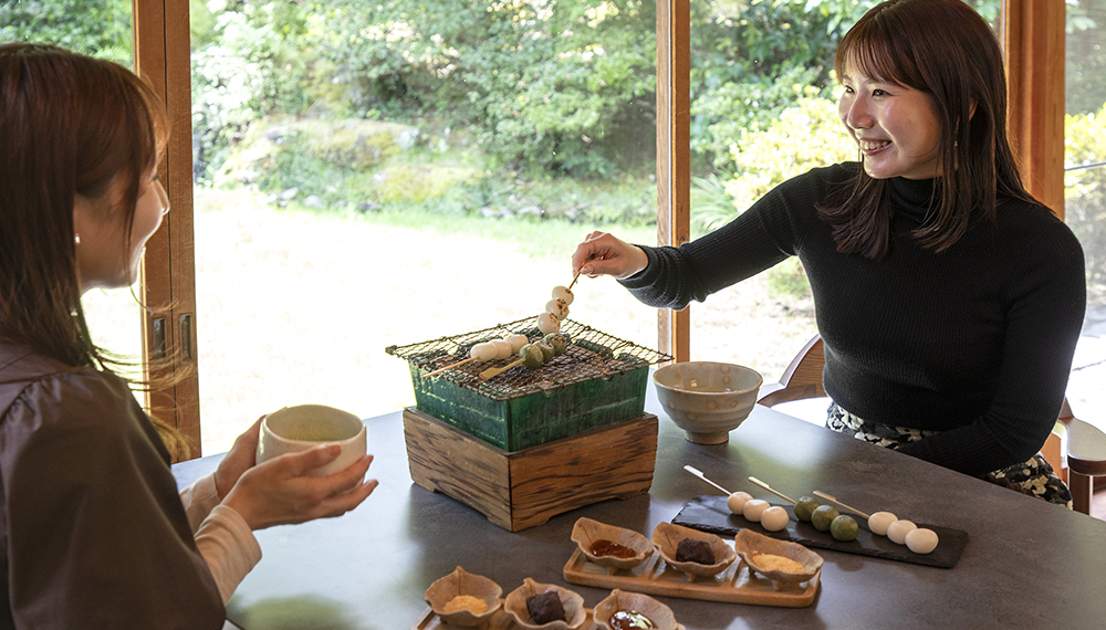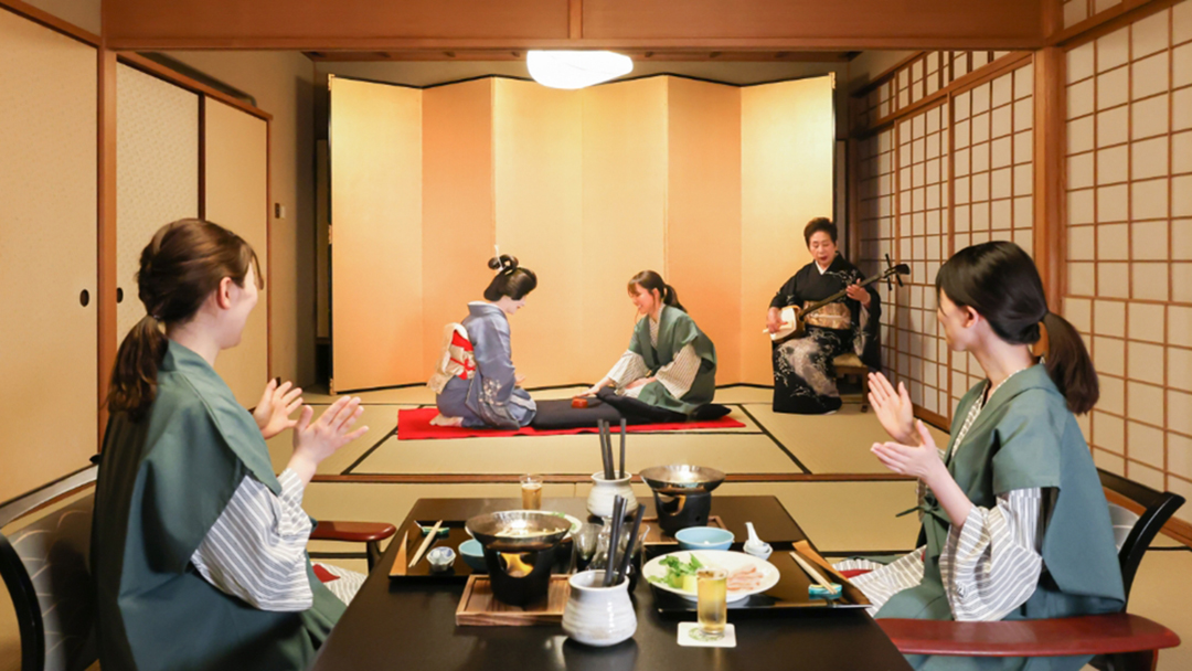 伊豆長岡地区で古くから親しまれている芸妓さんにご協力いただき、有名な「お座敷遊び体験」など、日本文化に触れる特別な体験をご用意しております。数寄屋造りの和風建築邸で、伝統文化に触れながら、こころに残るひとときをお過ごしください。