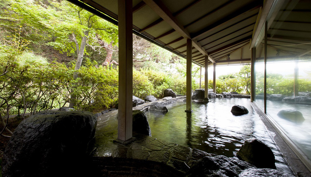 9.1pHの高濃度アルカリ泉で、無味無臭でクセがなくやわらかな感触の湯は、肌にしっとりとよく馴染みます。四季折々の木々を眺めながらの入浴は格別。神経痛や筋肉痛、冷え性に効果的で、美肌効果も高いとされる伊豆長岡温泉に浸かり、至福の時をゆったりとくつろぐ。全室かけ流し温泉付きなので、お好きな時にお部屋のかけ流し温泉に浸かり、湯浴みを存分に堪能する至福の時をお試しあれ。