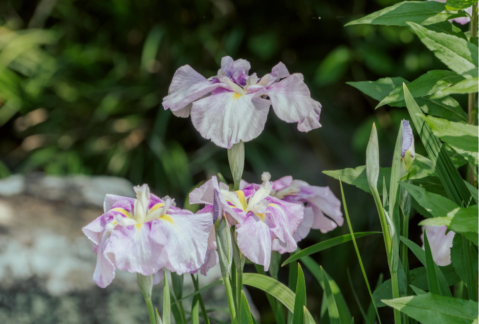 春は桜やツツジ、夏は花菖蒲、秋は紅葉、冬は寒桜や梅の花など。