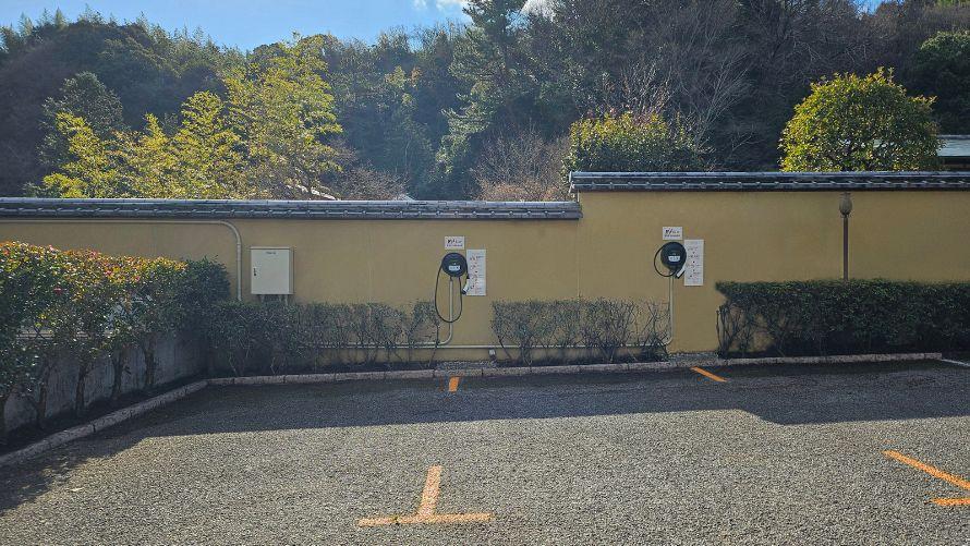 三養荘駐車場内に電気自動車用充電スタンド(6kW)を2台分設置いたしました。