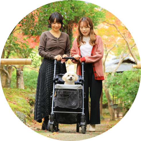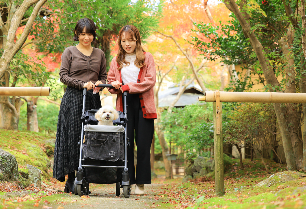 ペットカートを利用して、四季折々の風景が広がる日本庭園を愛犬と一緒に散策できます。