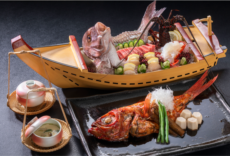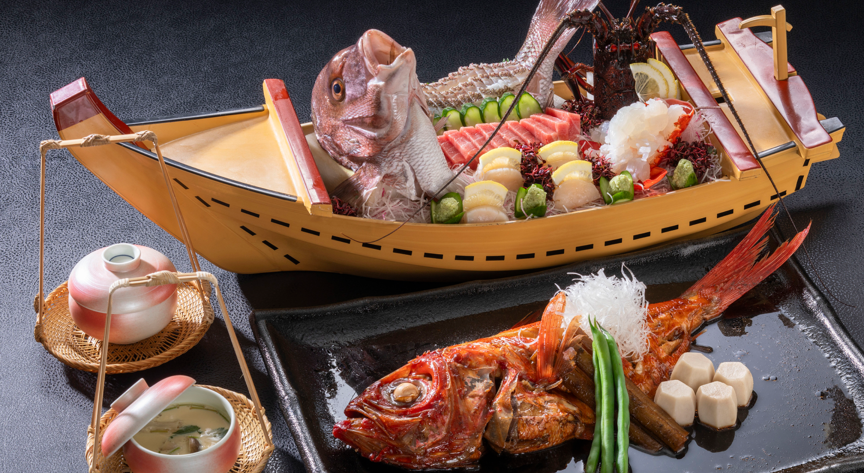舟盛りや金目鯛の煮付けをお楽しみいただけます。