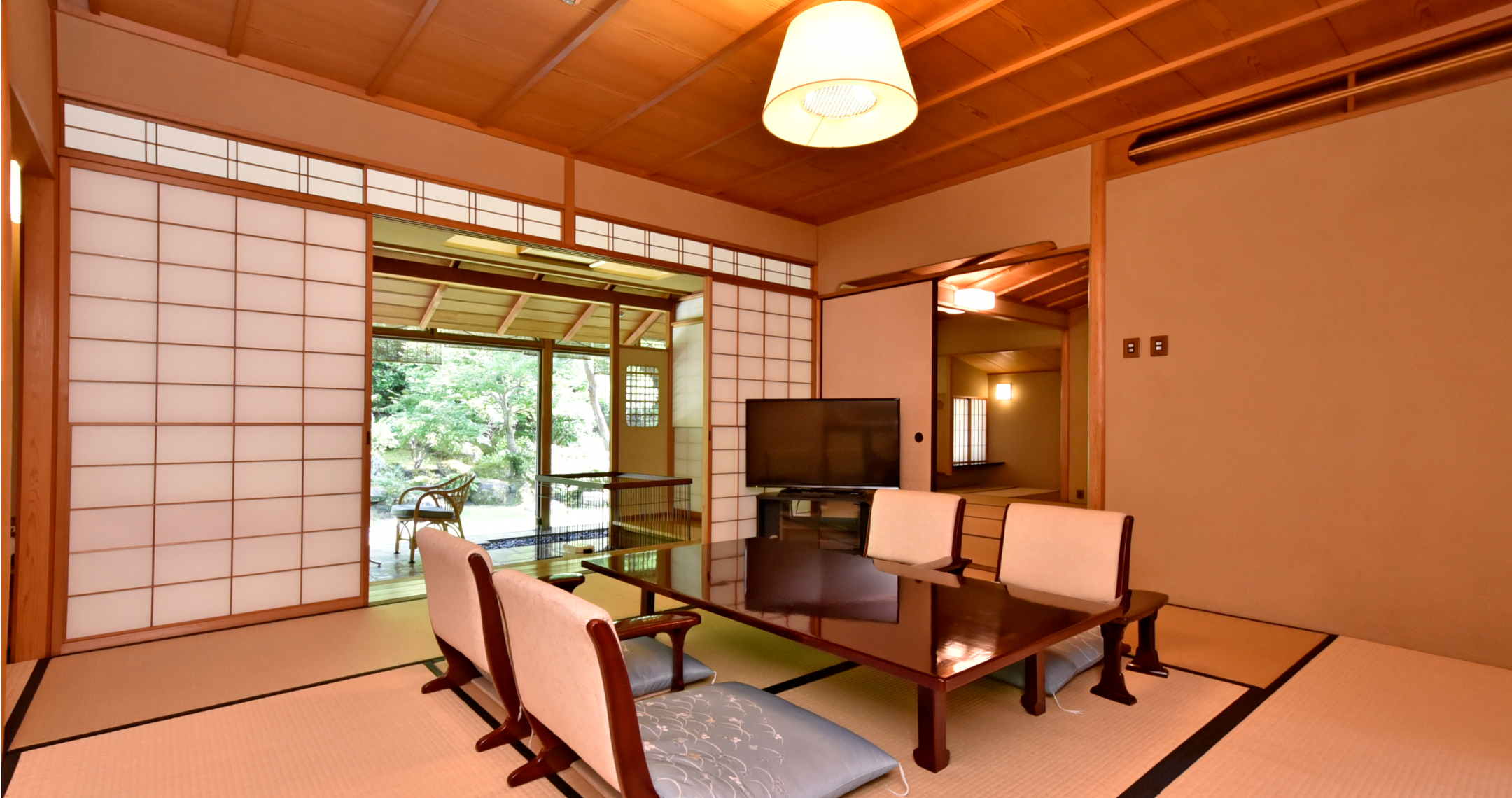 76㎡以上(本間+次の間)/ベッド無・布団/専用坪庭/客室内温泉