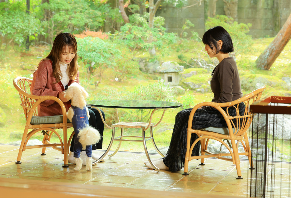 愛犬とともに専用の坪庭やかけ流しの温泉、お食事をお楽しみください。