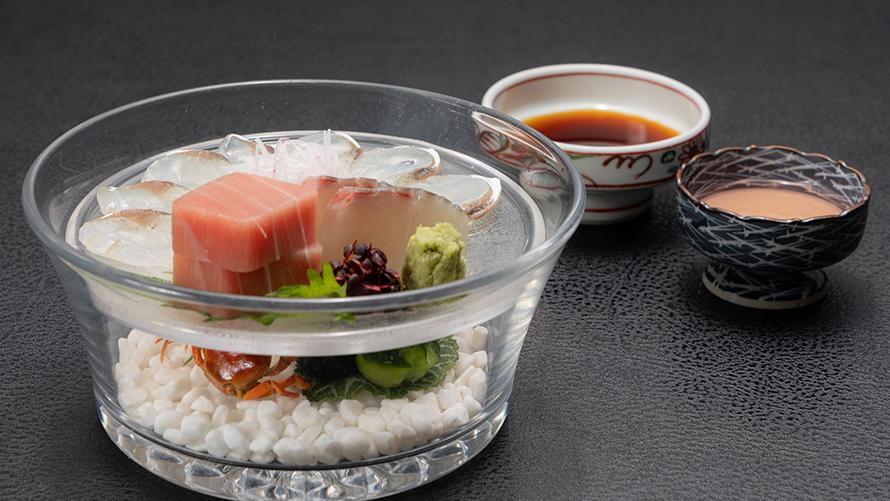 三養荘手作りの煎酒をお好みでつけてお召しあがりください。