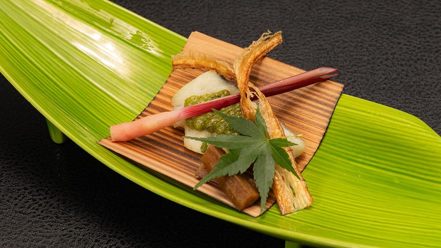 程よく脂がのったフッコを用いた「福子木の芽焼き」をご提供いたします。