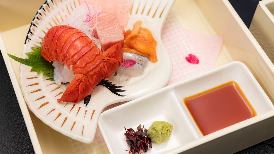 お造り:伊勢海老洗い・鮪・赤貝・細魚 褄いろいろ