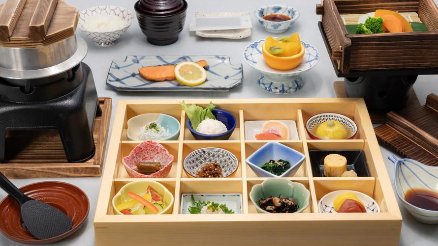 彩り豊かな十二割弁当をご用意。朝のひとときを華やかに演出します。