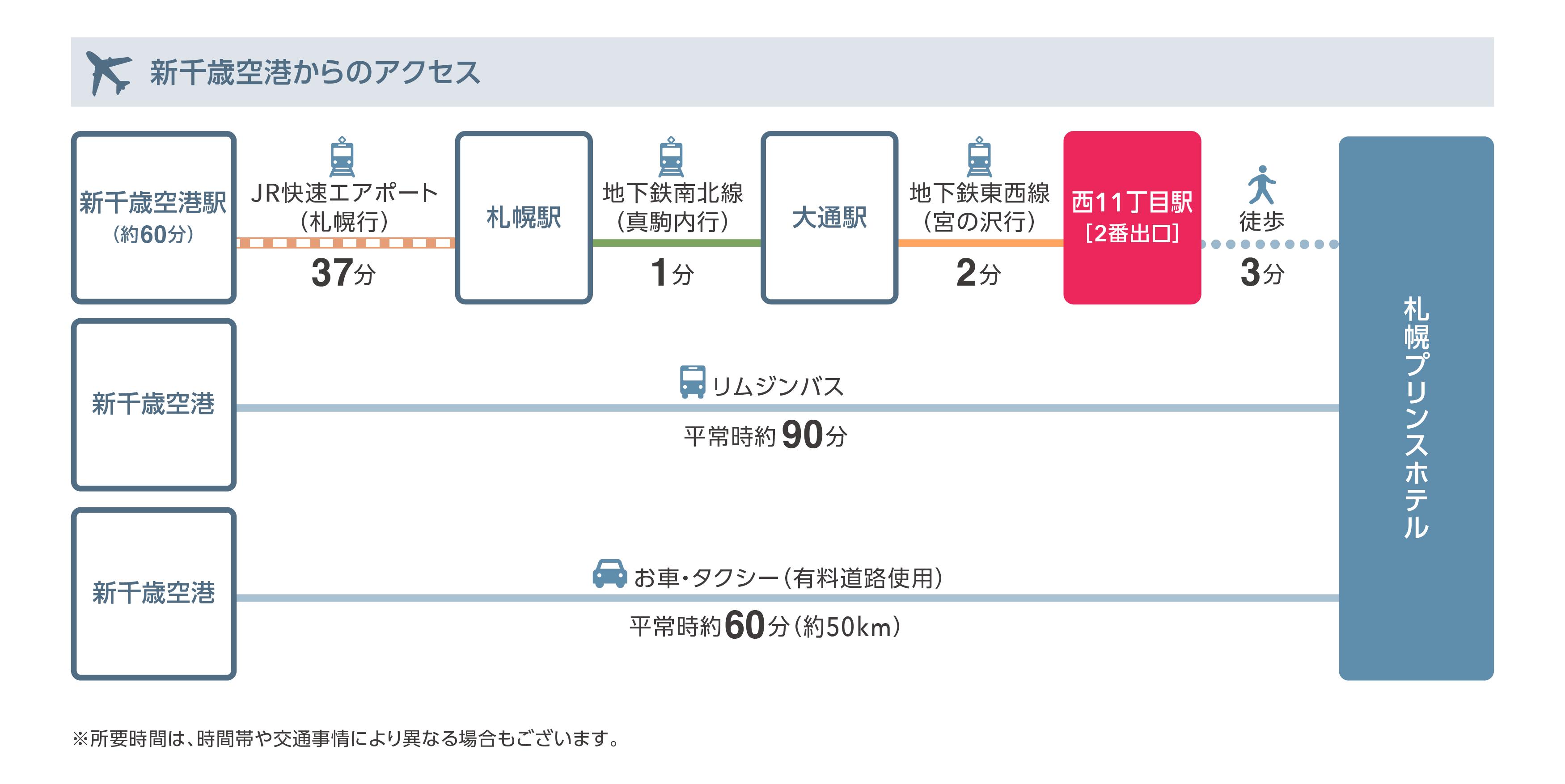 ※出発時刻はご利用前に各バス会社オフィシャルサイトまたは各バスカウンターにてご確認ください。札幌都心(札幌プリンスホテル発)→新千歳空港行