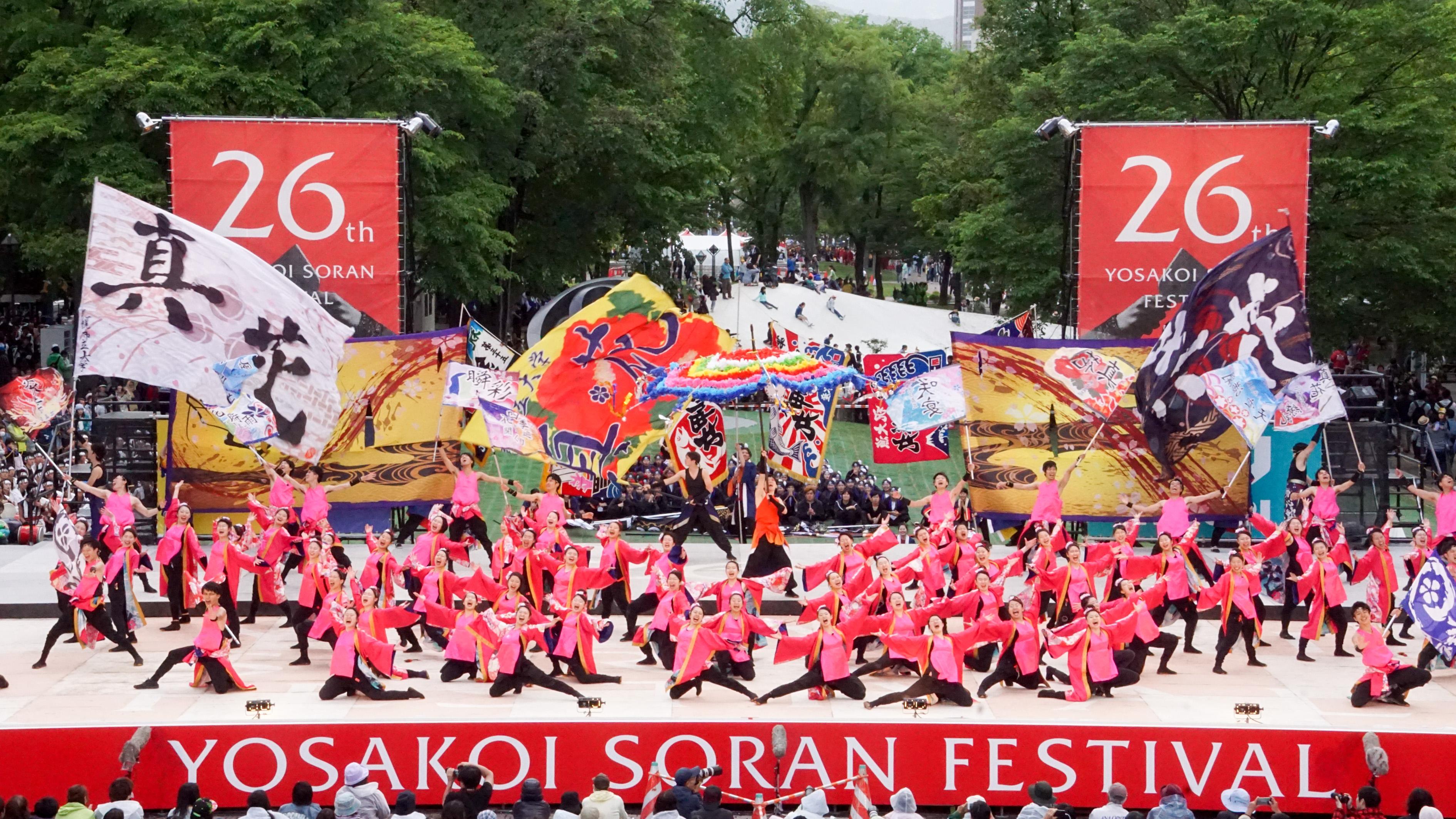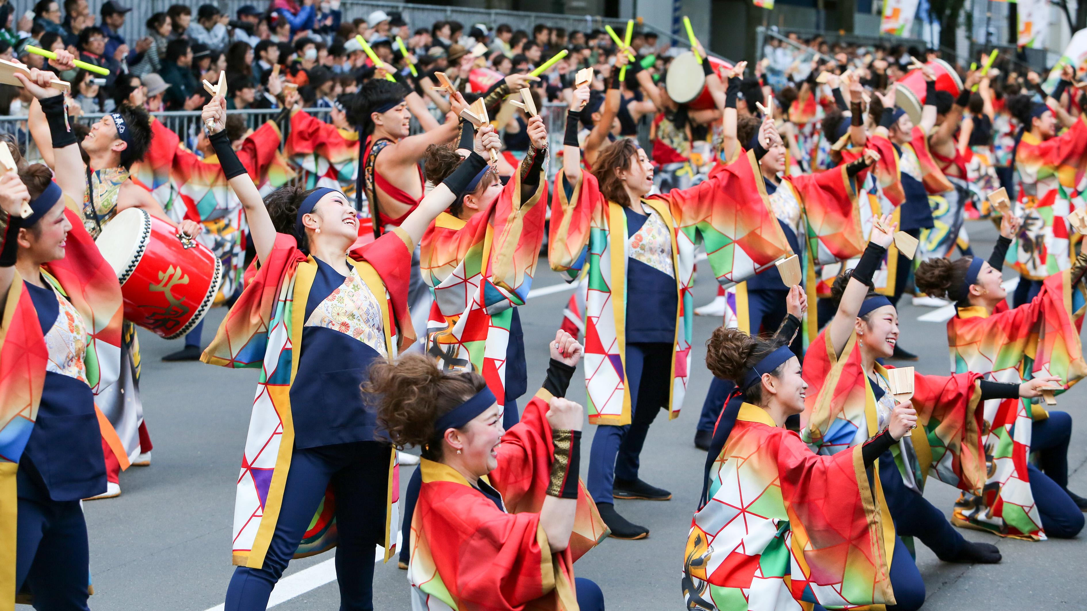 高知県の「よさこい祭り」を参考に、「鳴子」と北海道の民謡「ソーラン節」をミックスさせて踊るイベントで、1992年に10チーム1,000人の参加者でスタート。今では国内外から約3万人が参加し、約200万人の観客が訪れるイベントとなっている。メイン会場の大通公園では、パレードとステージで演舞を観覧でき、全国各地の食が味わえるブースがございます。