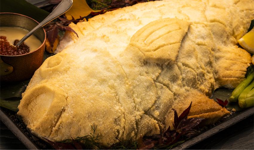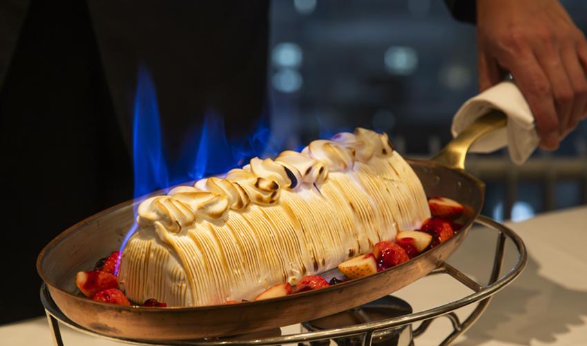 パフォーマンスエリアでは出来立てを提供。豪快にオーブンで仕上げる北海道食材を使用した料理をお楽しみください。