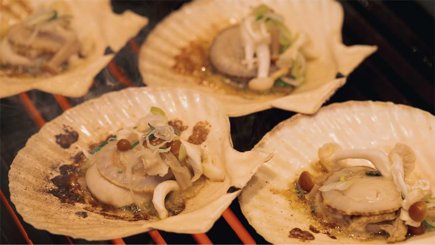 北海道産の帆立貝をバター、ホタテ醤油とともに香ばしく焼き上げます。
