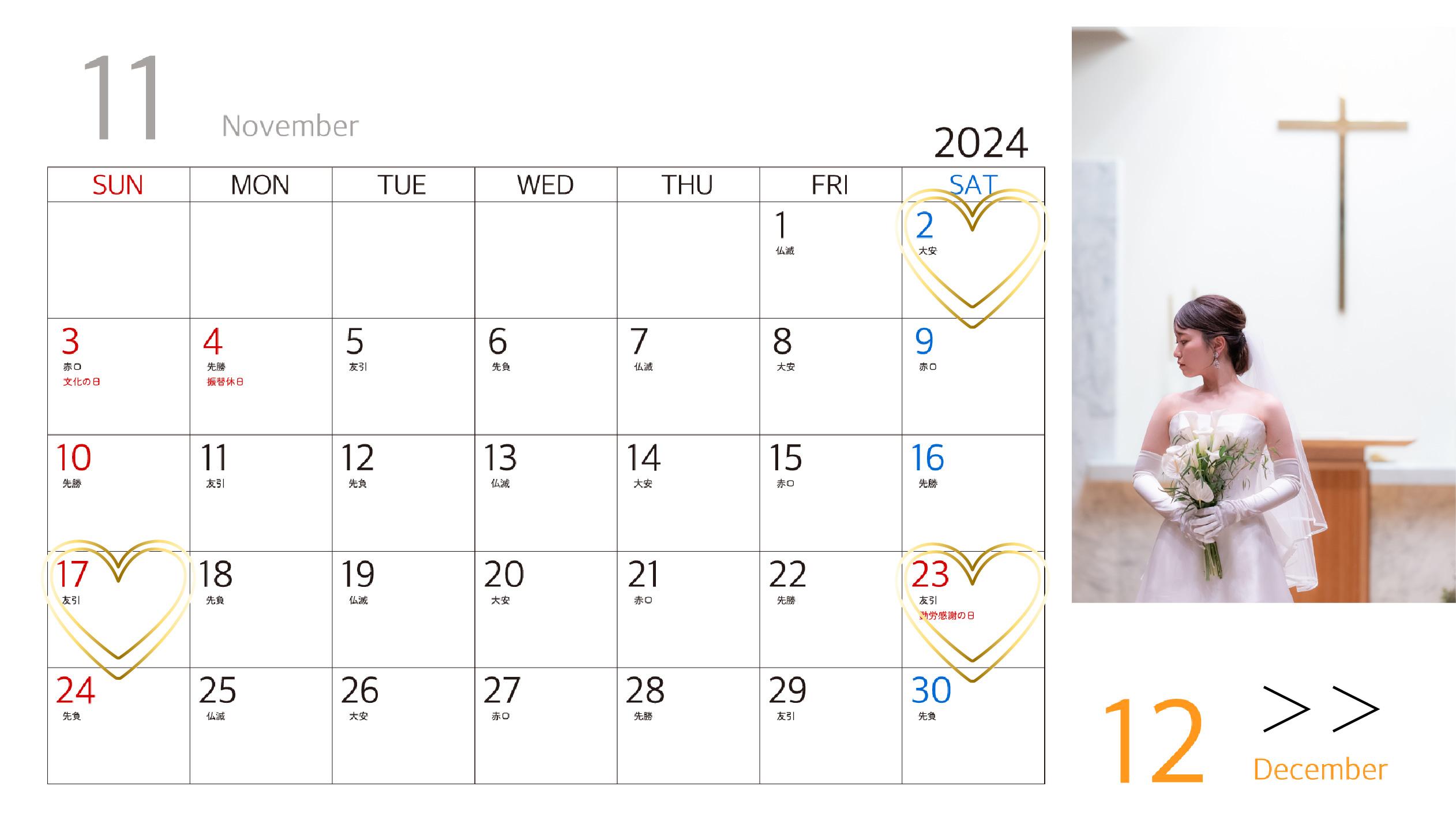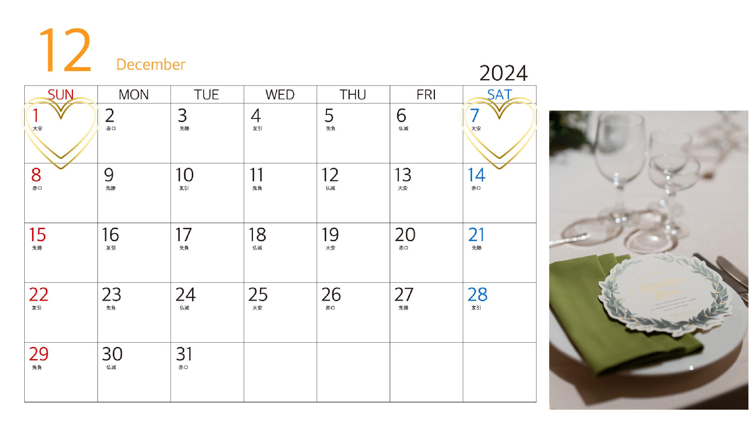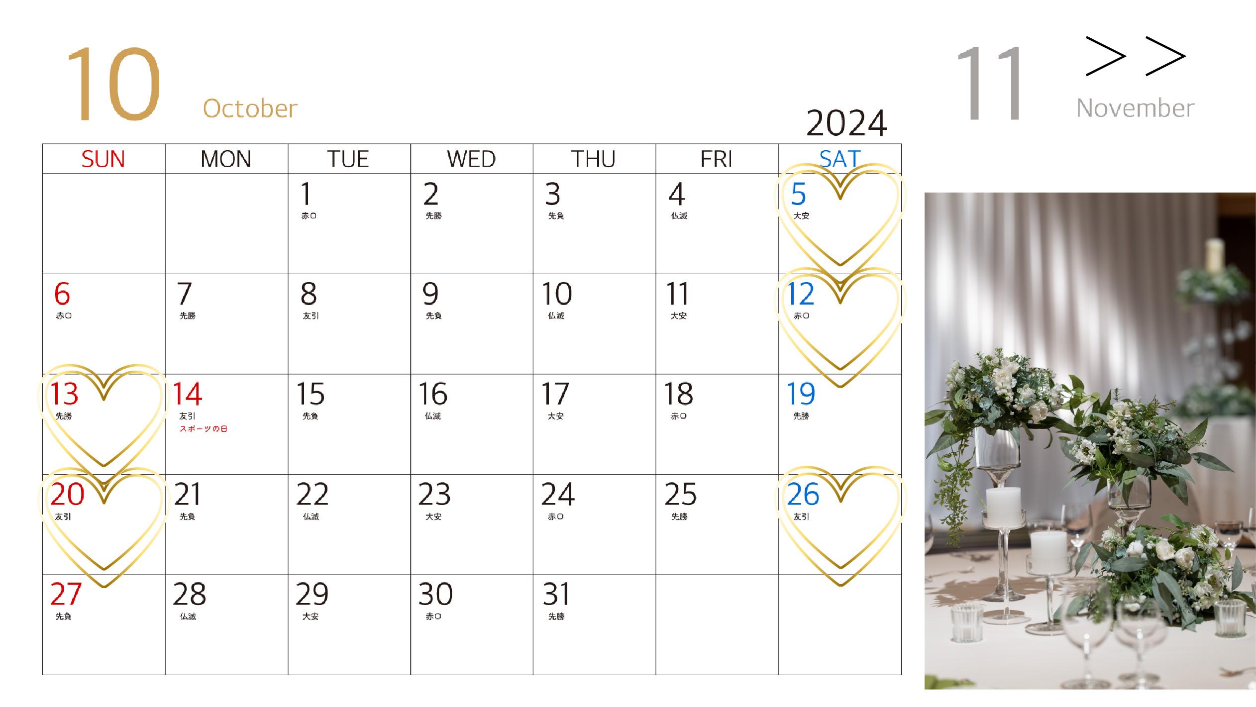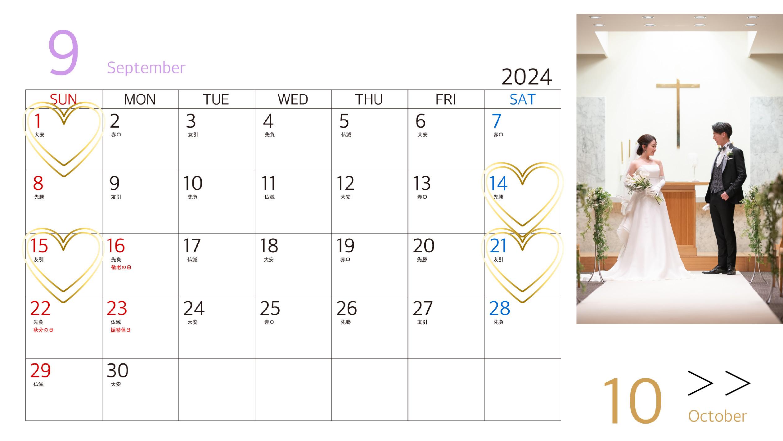 大切なウエディングにふさわしい日程をお選びください。
