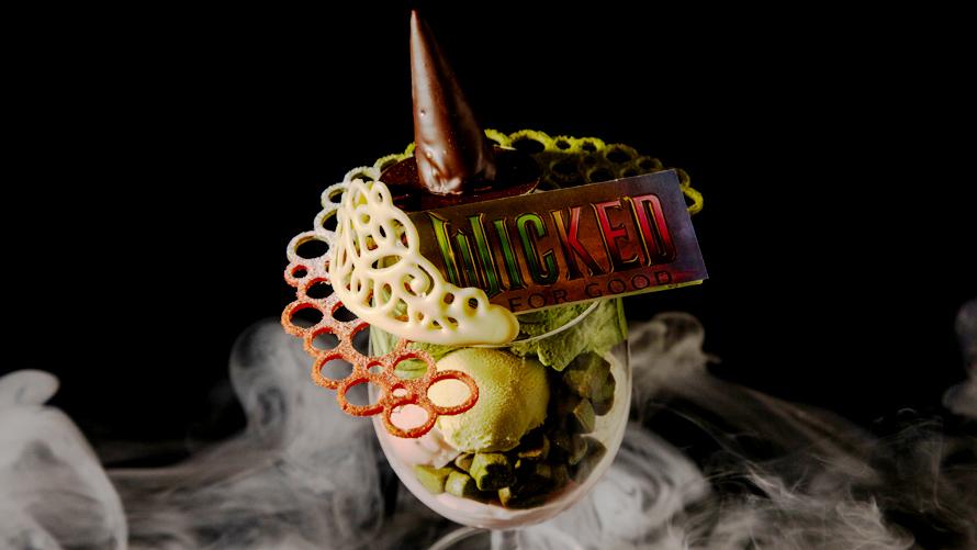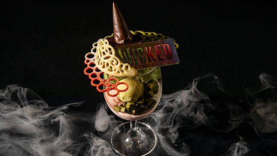 深い森のような抹茶アクセントは、真実を貫くエルファバの強さを。イチゴの甘い香りは、希望の象徴となったグリンダの優しさをパフェで表現しました。映画「ウィキッド 永遠の約束」の世界観をお楽しみください。