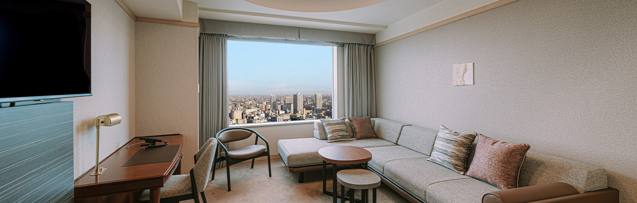 リビングルームとベッドルームの2部屋からなる上質空間。最大4名までご利用いただけます。