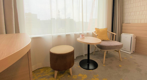 加湿空気清浄機/テレビ/電話機/冷蔵庫/マイナスイオンドライヤー/電気ケトル/温水洗浄便座/マルチ携帯電話充電器/セーフティーボックス/モーニングコールは8カ国語に対応(日本語、英語、韓国語、中国語、フランス語、ドイツ語、ロシア語、スペイン語)