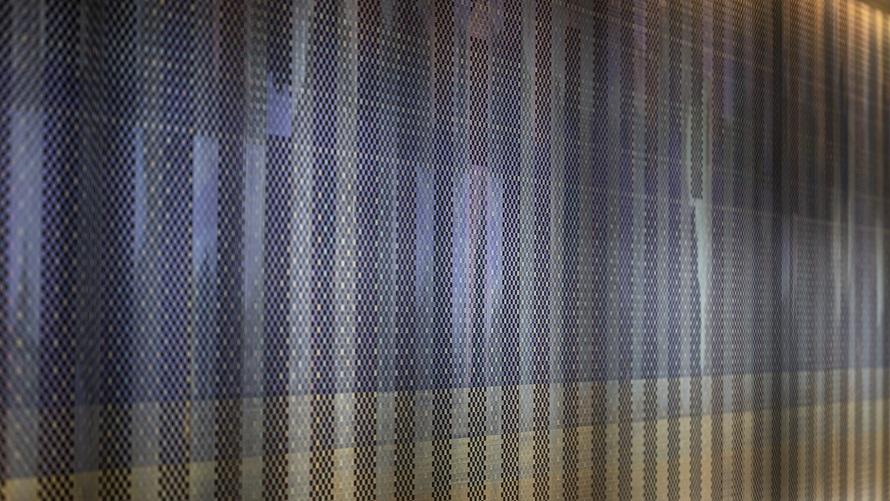 一見デジタルに思われる作品だが、近くで見ると手作業とわかるズレに着目し、あえてそのままに表現として取り込んでいる。
