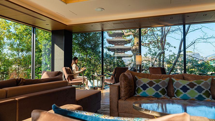 法観寺「八坂の塔」を目の前に望む絶景のゲストラウンジは、全客室のお客さまにご利用いただけます。