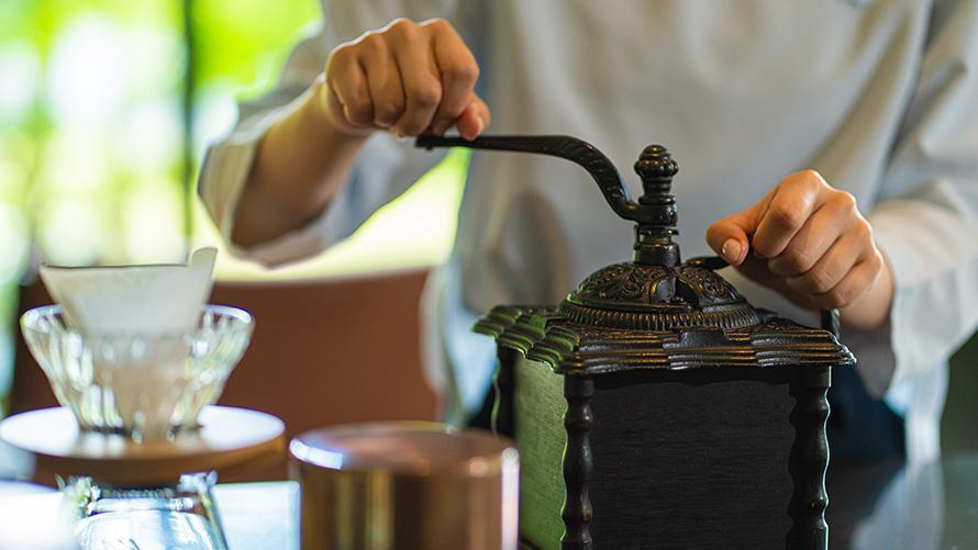 コーヒーミルによる挽きたてコーヒーや、抹茶の盆手前など、さまざまなサービスをご自身でお楽しみいただけます。