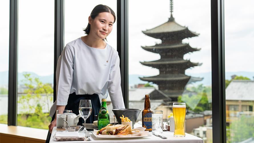 テラス付きのお部屋では、併設されたプライベートアウトドアテラスにて、京都の景色と共にインルームダイニングをお楽しみいただけます。