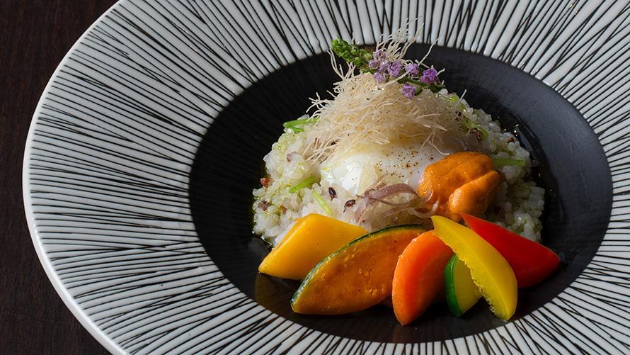 こだわりの濃厚卵を使い、京のすぐき漬け、みょうが、三つ葉をアクセントに。厳選食材で仕立てた当館オリジナルメニューです。