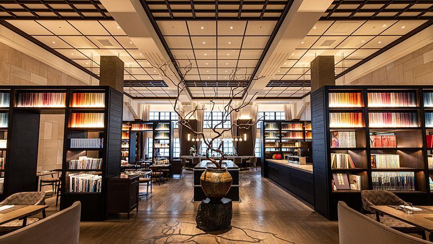 元講堂を改装し、図書館をイメージしデザインされたレストラン会場です。高さ 4 メートルもある開放感のある内装は、朝の優雅なひとときを演出します。