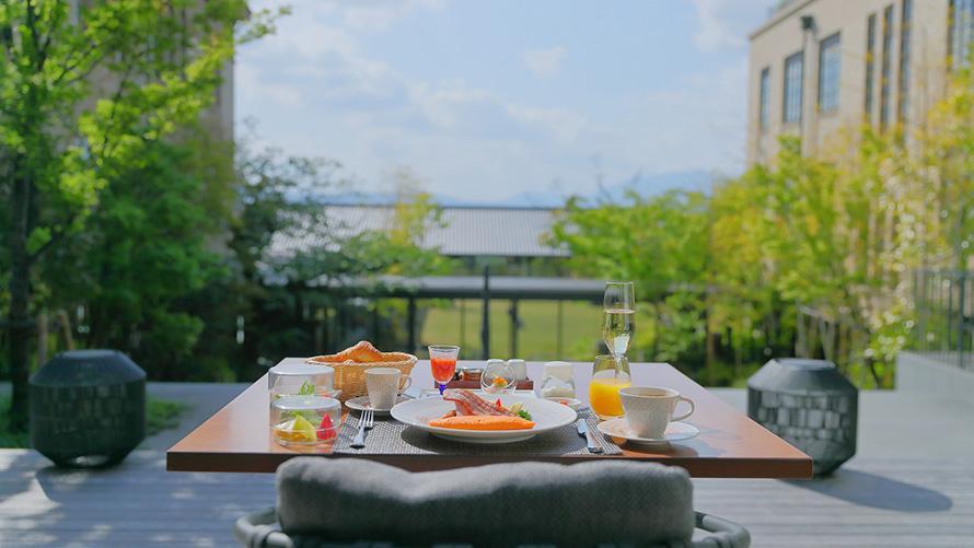 テラスや客室の中で、プライベートな空間でゆったりと朝食を召し上がっていただくことができます。極上の寛ぎの朝食タイムをお過ごしいただけます
