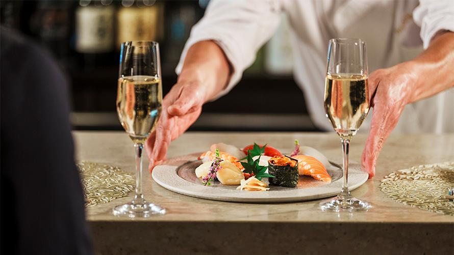 また、寿司との相性を追求した美酒も多彩に取り揃え、珠玉のマリアージュを心ゆくまでご堪能いただけます。